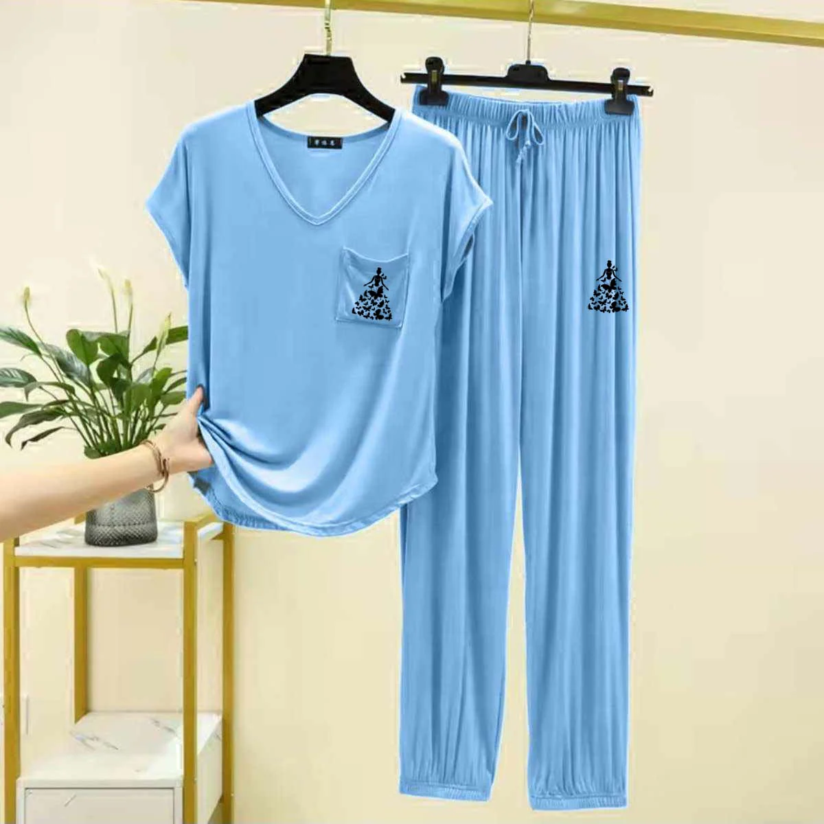 Zayra Cap-Sleeve Pocket-Style Logo-Printed 2-Pcs Lounge And Night Wear Suit. WLW-13