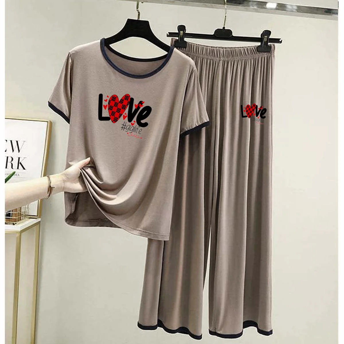 Zayra Contrast Tape-Style Big-Printed 2-Pcs Lounge And Night Wear Suit. WLW-07
