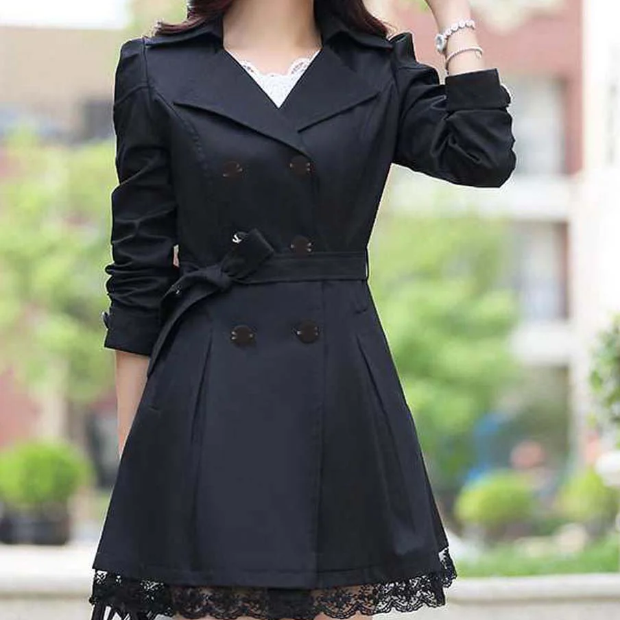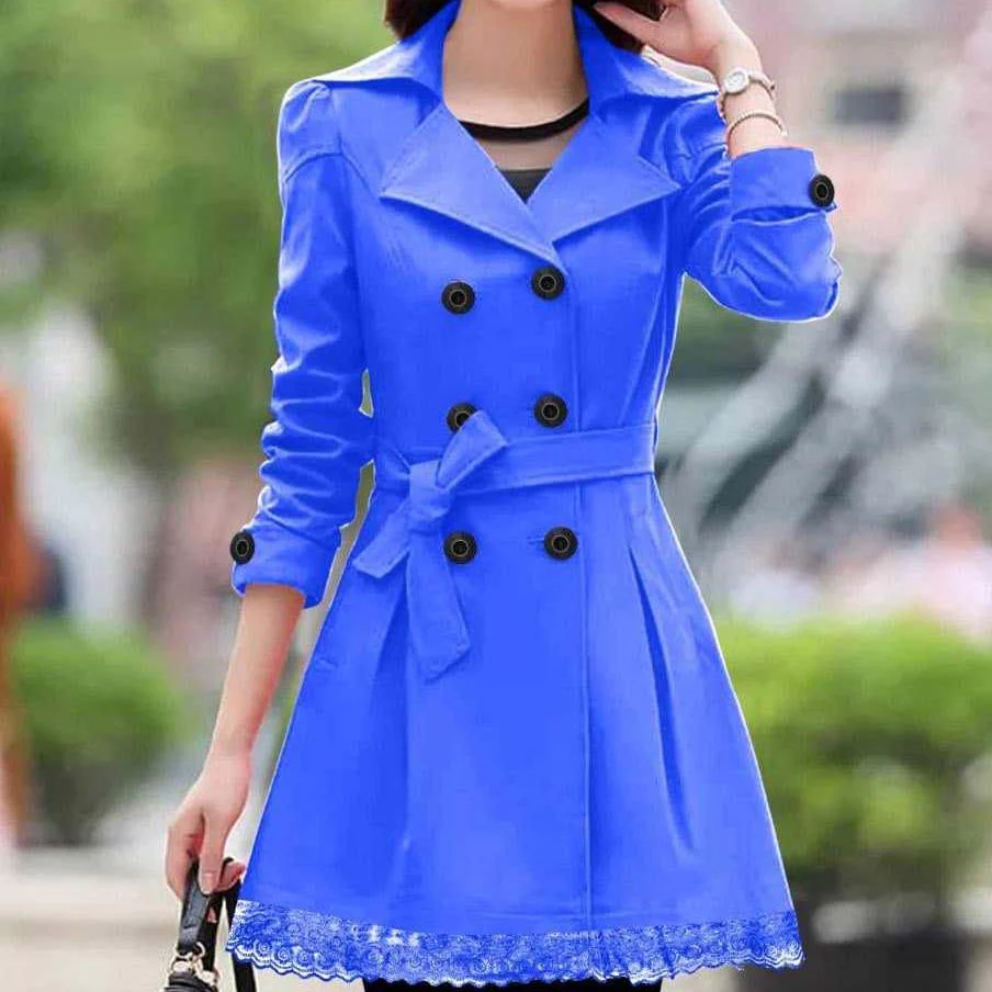 Zayra Lace Style Trench Winter Fleece Coat For Her