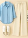 Elevate your everyday look with this effortlessly chic Shirt & Pant Set from Zayra. Designed for women who value both ease and elegance, the soft button-down shirt pairs beautifully with wide-leg black pants to give you a polished look without the extra effort.