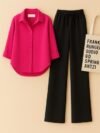Elevate your everyday look with this effortlessly chic Shirt & Pant Set from Zayra. Designed for women who value both ease and elegance, the soft button-down shirt pairs beautifully with wide-leg black pants to give you a polished look without the extra effort.