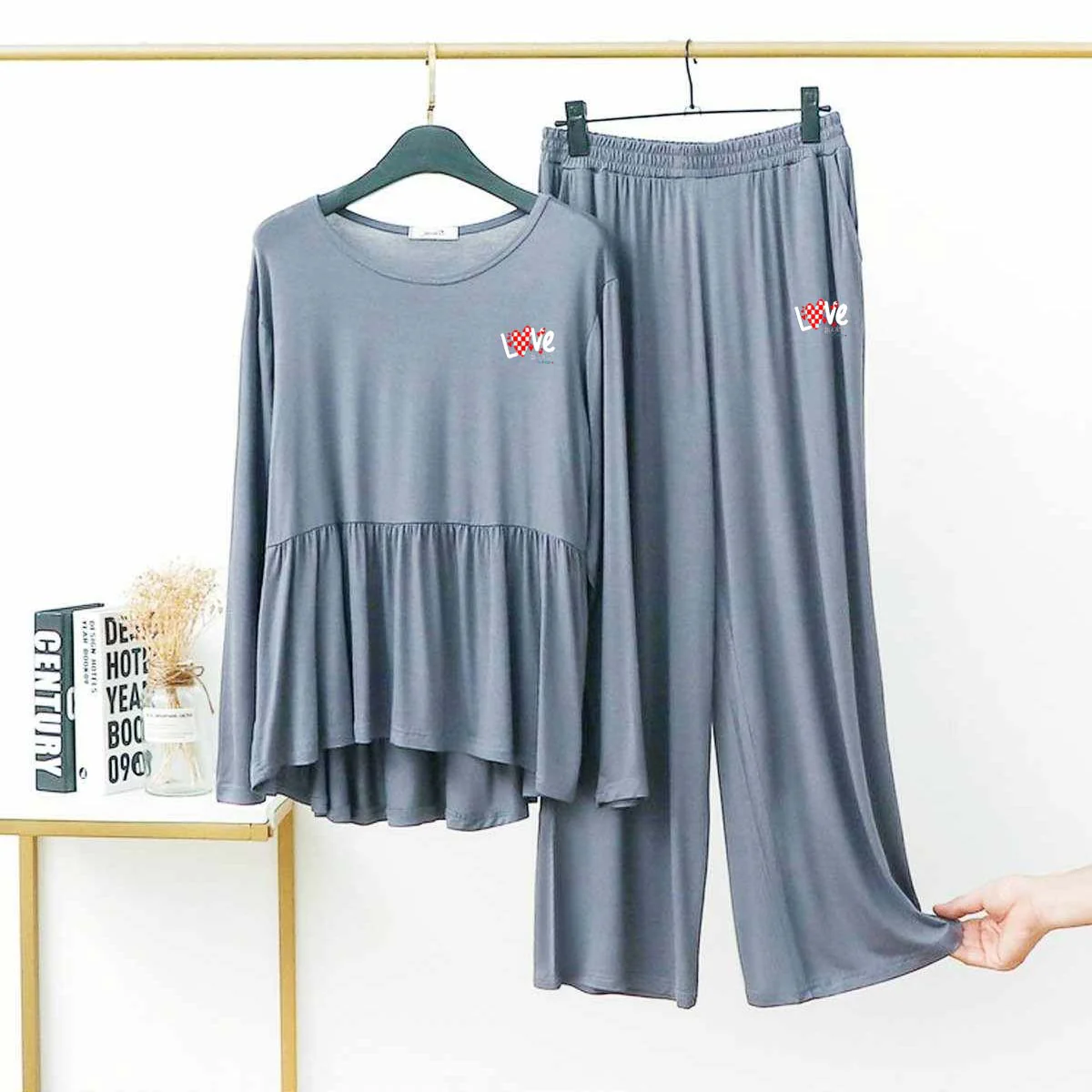Zayra Peplum-Style Logo-Printed 2-Pcs Lounge And Night Wear Suit. WLW-11