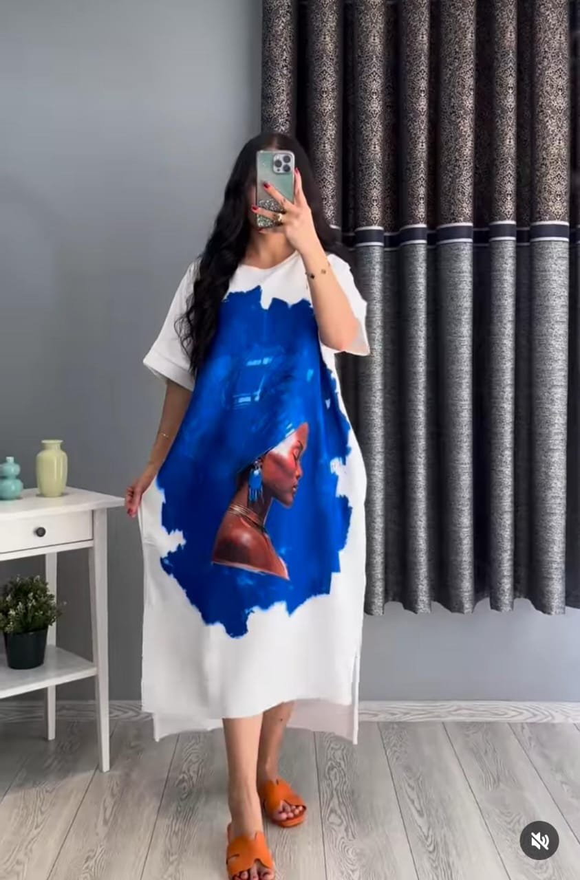 Zayra Summer Drop Shoulder Printed Long Top. C-02
