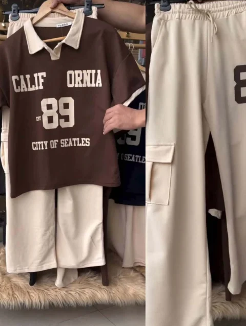 Zayra Cali-89 Collar Cargo Style Western 2-Pcs Summer Tracksuit For Her. WSTS-05