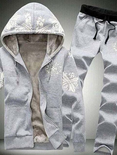 Zayra Hazel-Grey Hooded Style 2-Pcs Premium Quality Winter Tracksuit. D-10