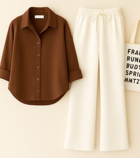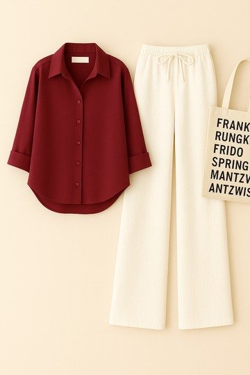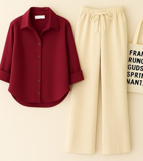 Zayra Luxe Co-Ord Set – Maroon & Beige