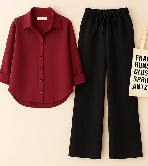 Zayra Luxe Co-Ord Set – Maroon & Black
