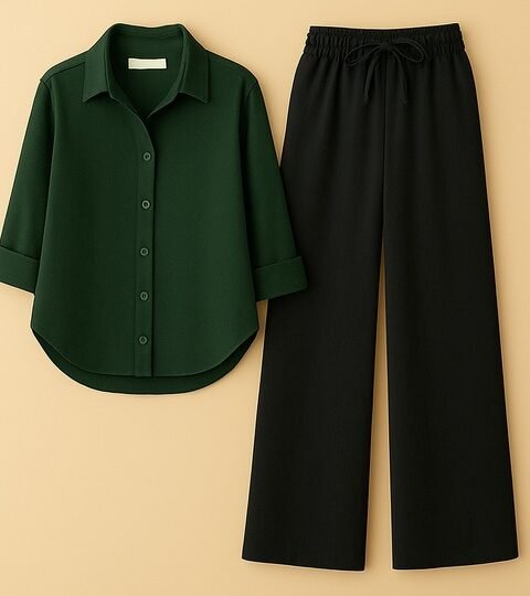 Zayra Luxe Co-Ord Set – Bottle Green & Black
