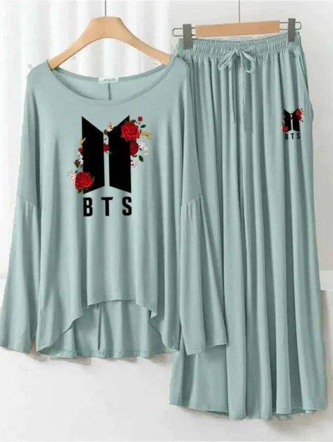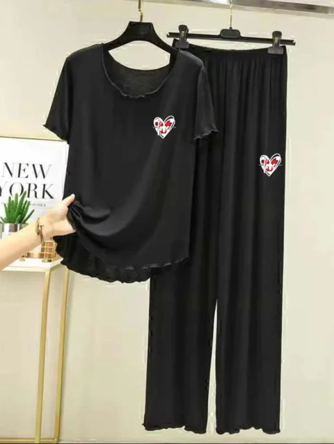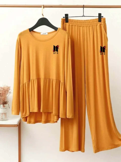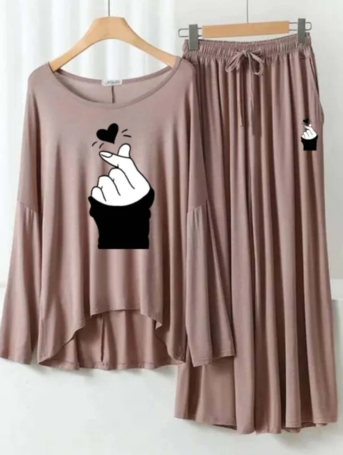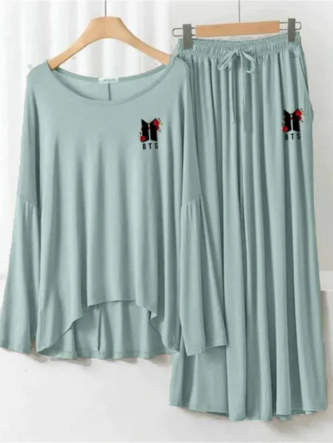 Zayra Plazo-Style Logo-Printed 2-Pcs Lounge And Night Wear Suit. WLW-08