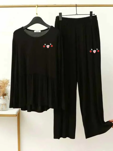 Zayra Piko-Style Logo-Printed 2-Pcs Lounge And Night Wear Suit. WLW-06
