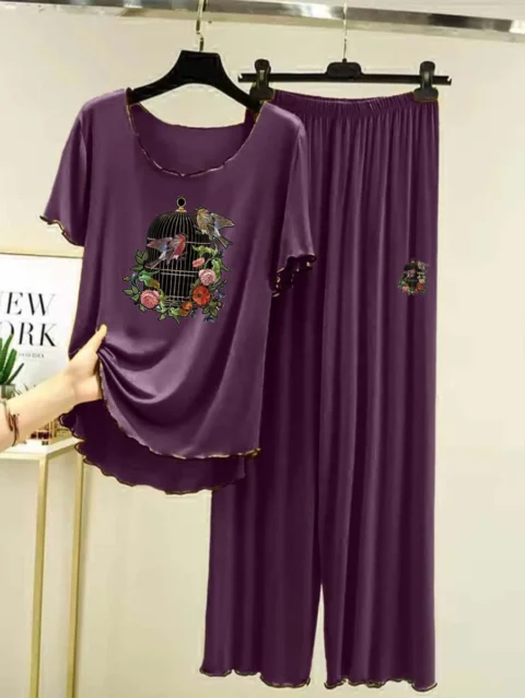 Zayra Plazo-Style Big-Printed 2-Pcs Lounge And Night Wear Suit. WLW-08