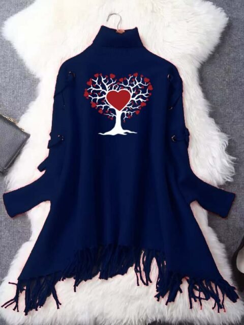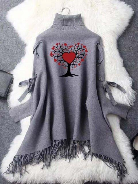 Zayra Red Heart Tree Eyelet Style Winter Bat-Wing Poncho