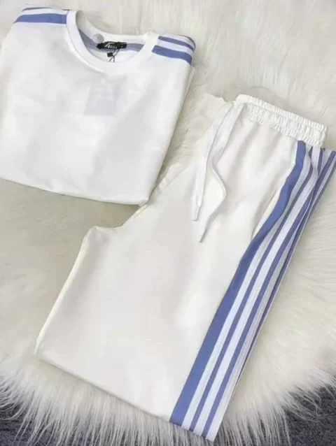 Zayra White Drop-Shoulder Stripe Style 2-Pcs Summer Dry-Fit Tracksuit For Her. WSTS-04