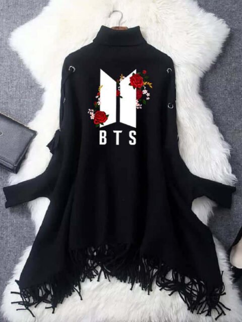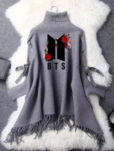 Zayra BTS Flower Eyelet Style Winter Bat-Wing Poncho