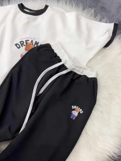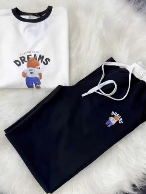 Zayra Bear Dreams Drop-Shoulder Style 2-Pcs Summer Dry-Fit Tracksuit For Her. WSTS-02