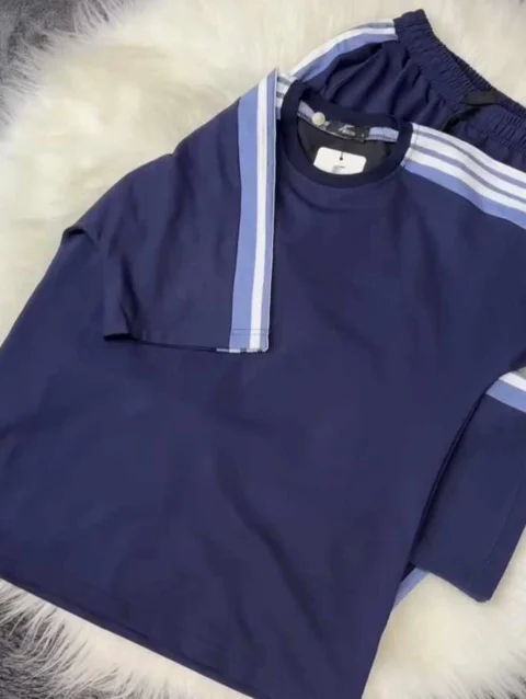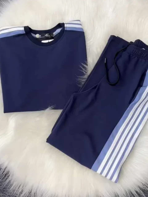 Zayra Blue Drop-Shoulder Stripe Style 2-Pcs Summer Dry-Fit Tracksuit For Her. WSTS-04
